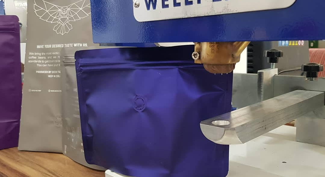 The valve mounting machine is a machine that is used to mount one-way automatic valves on the surfaces of the packages with hot pressure. Since the micron thicknesses of the packages differ, they have functions such as pressure time adjustment, pressure force adjustment and temperature adjustment in order for the valve to be correctly mounted on the package. Our valve assembly machine is designed for small and medium sized coffee roasters. It is small in size and using on a table desktop is possible. In addition, we can produce valve assembly machines specially for customers who demand it.